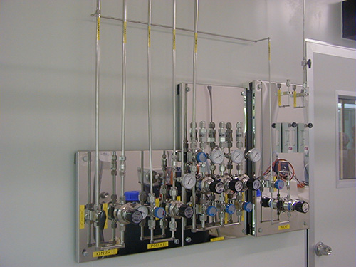 產(chan)品說明:實驗(yan)室(shi)氣(qi)體由實驗(yan)室(shi)外(wai)氣(qi)瓶(ping)區域(yu)用(yong)管路(lu)引進(jin),除了儀器空(kong)氣(qi)(工(gong)廠(chang)空(kong)氣(qi))是(shi)工(gong)廠(chang)直(zhi)接(jie)(jie)生產(chan)外(wai),其余氣(qi)體應采用(yong)高壓(ya)(ya)氣(qi)瓶(ping)供氣(qi),安裝半自動轉(zhuan)換(huan)(huan)閥控(kong)制氣(qi)瓶(ping)更換(huan)(huan),主要的(de)控(kong)制閥門(men)和減(jian)壓(ya)(ya)閥門(men)都(dou)安裝在(zai)實驗(yan)室(shi)外(wai),實驗(yan)室(shi)氣(qi)體管路(lu)主要材質為不(bu)銹鋼,安裝在(zai)天花板下方,沿(yan)著墻走,這樣便(bian)于(yu)檢(jian)查和維修(xiu)。此外(wai),中央臺(tai)氣(qi)體管路(lu)的(de)引入通過服務(wu)柱所有(you)的(de)氣(qi)體管路(lu)在(zai)工(gong)作臺(tai)上具(ju)有(you)合(he)適的(de)控(kong)制閥門(men)以便(bian)于(yu)操(cao)作,所有(you)氣(qi)體管路(lu)的(de)連接(jie)(jie)均采用(yong)無縫焊接(jie)(jie)。